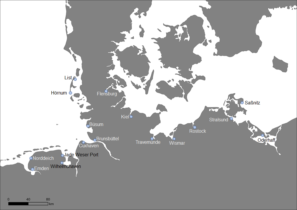 Das Stationsnetz des Neobiota-Erfassungsprogramms umfasst ausgewählte Standorte entlang der deutschen Nord- und Ostseeküste. Hier werden regelmäßig Proben genommen und Umweltdaten erfasst. Dazu gehören vor allem Häfen, Küstenbereiche und andere sensible Lebensräume, in denen die Einschleppung neuer Arten und deren anschließende Etablierung besonders wahrscheinlich ist. Die Stationen sind entlang der deutschen Küsten so verteilt, dass ein möglichst vollständiges Bild über das Vorkommen gebietsfremder Arten entsteht. Durch die langfristige und wiederholte Beprobung an denselben Orten können Veränderungen der Ausbreitung genau verfolgt werden.